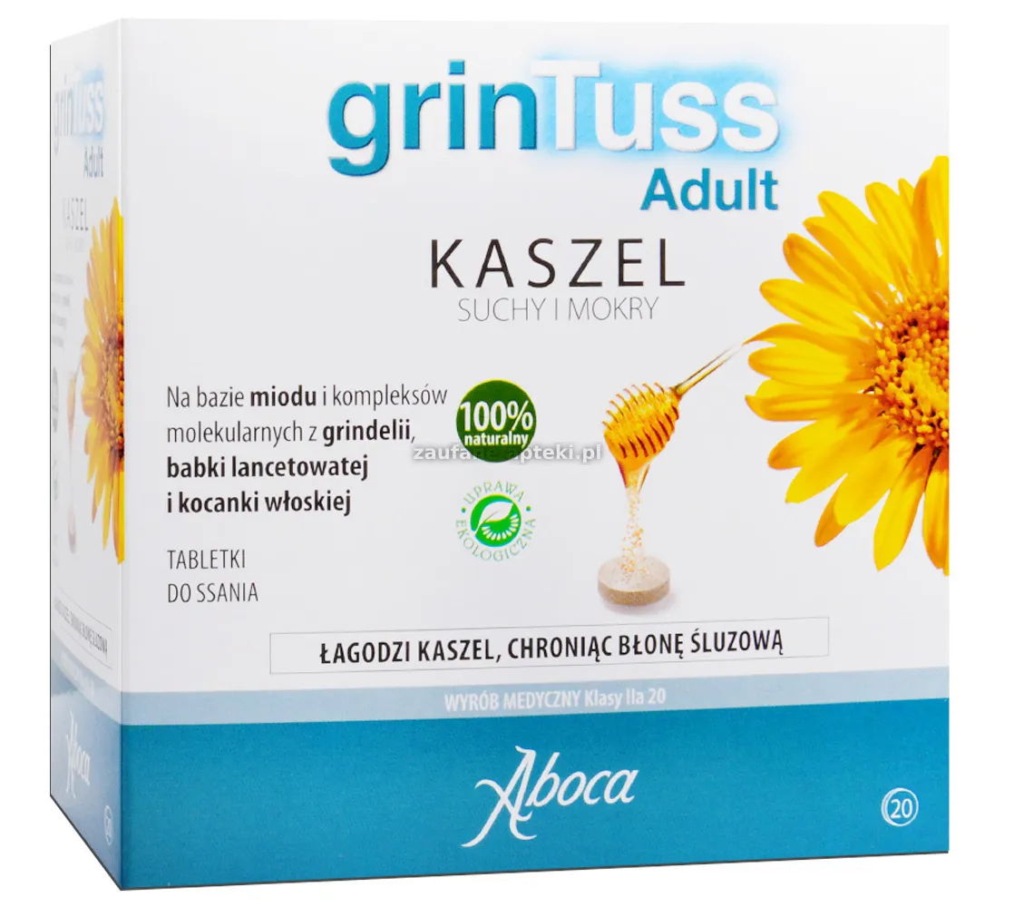 - Naturalne składniki, takie jak porost islandzki, prawoślaz, miód i imbir, działają powlekająco i łagodząco.
