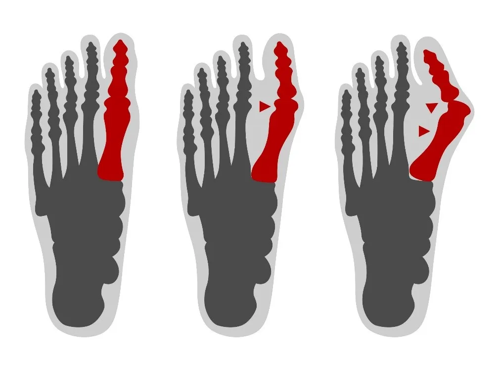 Deformacja haluksowa rozwija się stopniowo. W początkowej fazie obserwujemy niewielkie odchylenie palucha, które może być niemal niewidoczne. Z czasem jednak, pod wpływem obciążenia i nieodpowiedniego obuwia, deformacja postępuje. Paluch coraz bardziej nachodzi na drugi palec, a głowa pierwszej kości śródstopia staje się wyraźnie uwypuklona i bolesna. W zaawansowanych stadiach dochodzi do poważnych zniekształceń całej stopy, co ma ogromny wpływ na jej biomechanikę i codzienne funkcjonowanie.